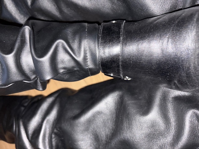 極薄黒革長手袋で太腿ブーツを撫ぜる